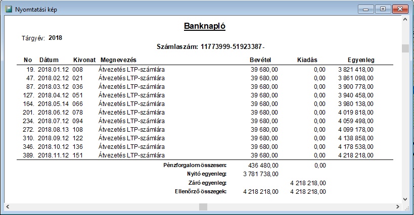 A banki tételekről banknapló készülhet dátumszűrővel és/vagy számlaszám szűrővel vagy azok nélkül: